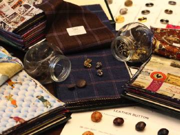 ヒアリングでご相談されたイメージを元に、ご予算に応じた生地や裏地・ボタンなどパーツ素材を選んでいきます。 約5,000種類の国内外の生地、生地の特性にあうパーツの中から、お客様に似合う素材をご提案します。